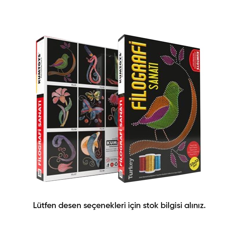 Orta Doğu'da doğup tüm dünyaya yayılmış olan filografi sanatı, çocuk ve yetişkinlerin keyifli vakit geçirmesini ve el becerilerinin gelişmesini sağlıyor. Tahta üzerinde çivi ve teller yardımıyla farklı motif ve desenlerin oluşturulması olarak tanımlanan filografi, hayal gücünün gelişmesine de katkı sağlıyor. Filografi sanatında renkli tellerle farklı örme teknikleri kullanılarak isteğe göre hat yazıları,şekiller, çiçekler, hayvanlar ve çizgi karakterler gibi desenlerahşap panolara işleniyor. Kumtoys filografi sanatı, çocuk ve gençlerin filografi tekniğini öğrenmesini kolaylaştıracak şekilde tasarlanmış olup ihtiyaç duyulan tüm materyalleri bir arada sunuyor. Kumtoys filografi seti, ahşap zemin üzerinde motif işaretli şekilde geliyor. Filofrafi setinin içinde işaretli motifin içinin doldurulması için çok sayıda renkli filografi ipi ve yeterli sayıda çivi yer alıyor.