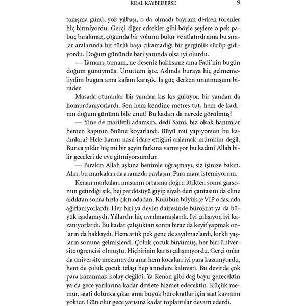 Oysa pek çok kadının gönlüne taht kurmuş bir kraldı o… Uzun süre ne kendi inandı tahttan indiğine, ne de kadınlar. Ama bir şeylerin değiştiğini yine de ilk hisseden kadınlar oldu; ona yıllarca köle gibi itaat eden kadınlar… Psikiyatrist Dr. Gülseren Budayıcıoğlu Kral Kaybederse romanında, doruklardan aşağı inmeyeceğini sanan bir avcının avına av olup yuvarlanışını, kendini sevilmeyeceğine inandırmış mutsuz bir kadının da trajik hayatı içinde avken nasıl avcı olduğunu anlatıyor.